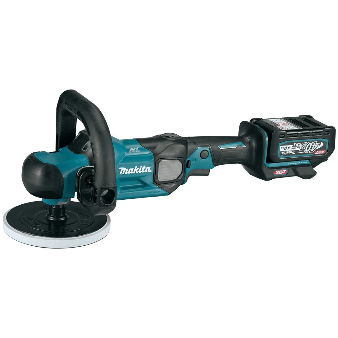 The 40V max XGT Brushless 7″ Polisher provides a cordless solution for a variety of polishing applications where mobility is important. It features a Makita-built brushless motor with a variable speed control trigger and dial offering 600 – 2,200 RPM which enables the user to match the speed to the application. The Polisher includes a soft start feature which suppresses the start-up reaction for smoother start-ups and longer gear life.