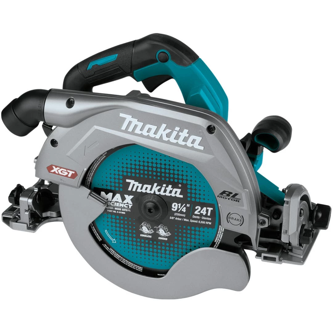 The 40V max XGT® Brushless 9-1/4″ Circular Saw with Guide Rail Compatible Base combines efficient cutting with the convenience of guide rail compatibility. It features a die-cast magnesium base, blade guard, and blade cover for lower weight at only 10.4 lbs. with battery (battery sold separately). The convenient guide rail compatible saw base interacts with optional guide rails to provide perfect, dead-on straight or bevel cutting without the need for an adapter.